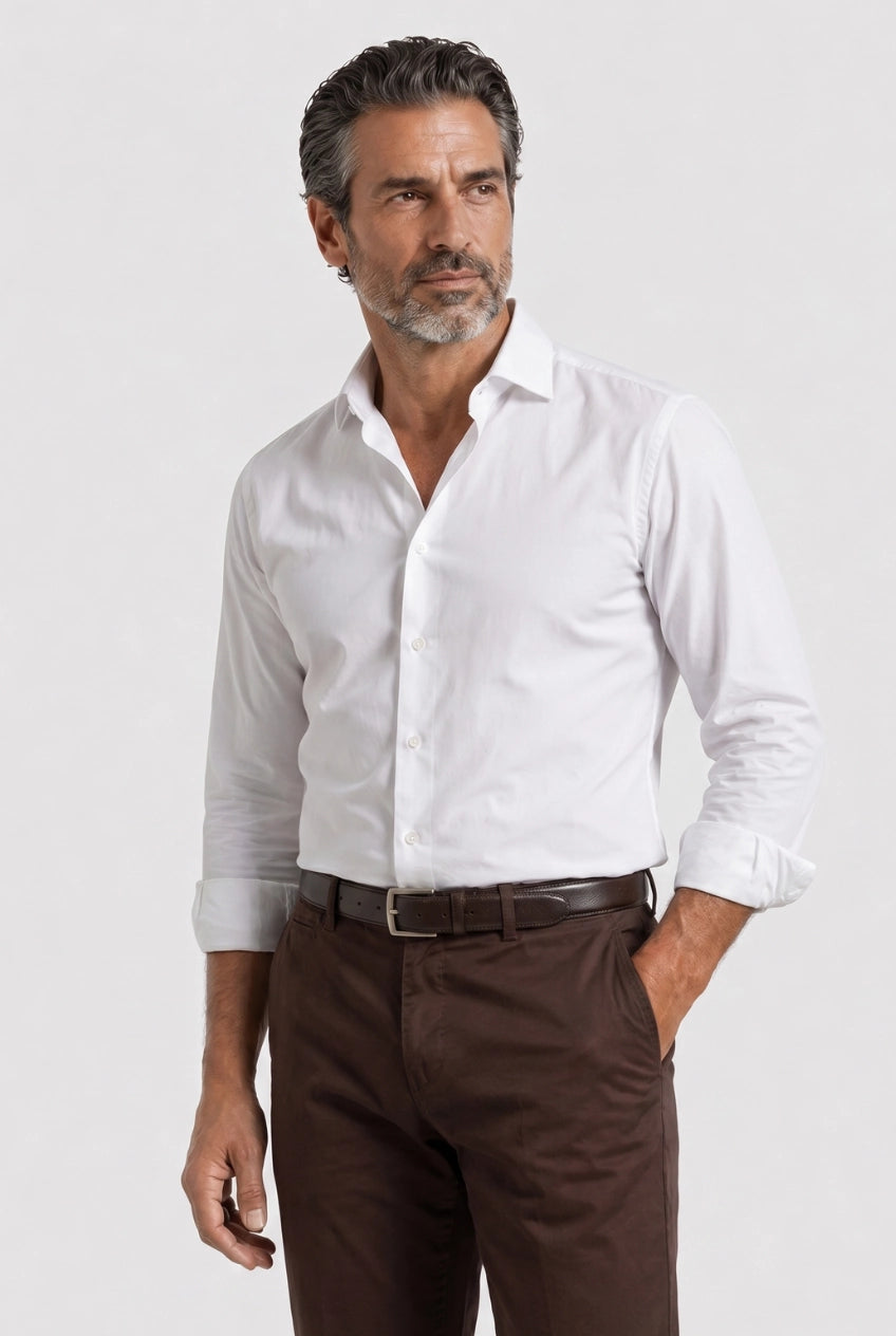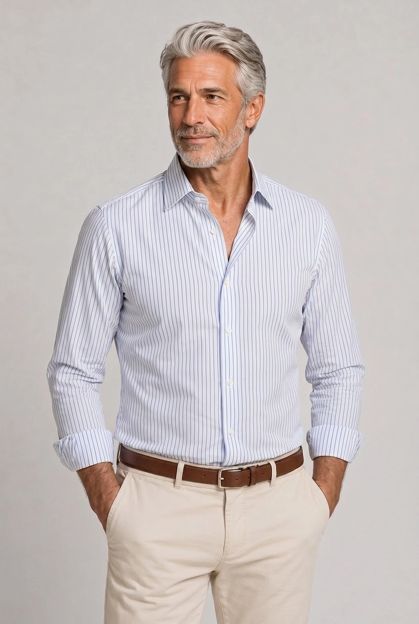 La nostra Polo Classica Italiana è pensata per l'uomo che sa distinguersi senza sforzo. Una vestibilità comoda e rilassata, perfetta per un pranzo in terrazza, una passeggiata serale o un aperitivo con gli amici.